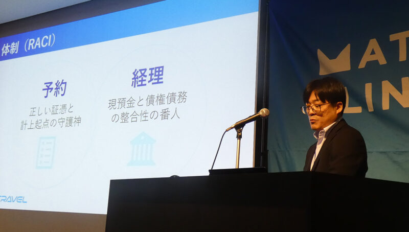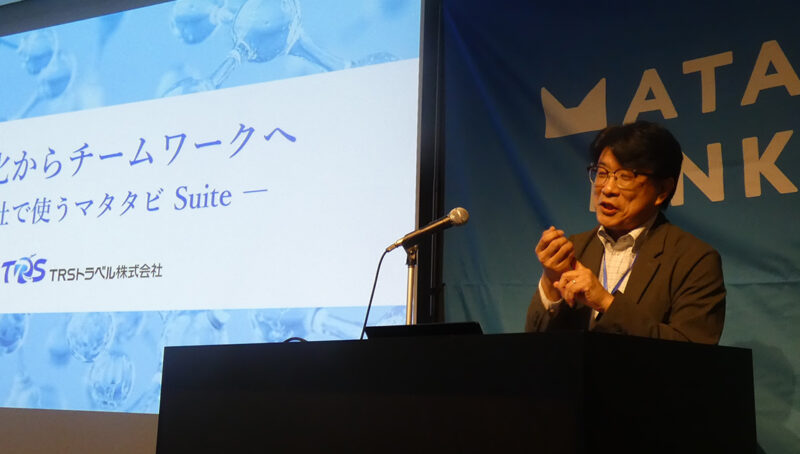 トラベルサービス事業部グループリーダーの金澤様が、「マタタビを使い倒してみた!現場から生まれた3つの業務改善策」を発表。書式統一による情報格差の解消や、システムを軸とした情報共有の仕組みづくりについて紹介されました。